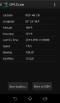 Mit dieser App kann der GPS Status (Koordinaten, Anzahl gefundener Satelliten, Geschwindigkeit, Richtung, usw.) angezeigt werden, inklusive Information zum Satellit - zum Beispiel Höhenwinkel, Signal-Rausch-Verhältnis (SNR).